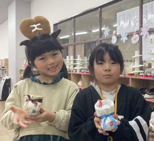 少し難しかったですが、完成後にはゼリーを詰めて、素敵なブーツになりました!