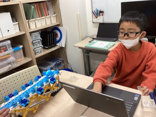 12月のキッズエリートクラスは、三角の連続で作られた橋の構造について学習。