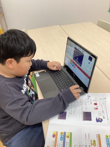1月のベーシッククラスでは、タブレットとブロックを使ってのレッスンでした。