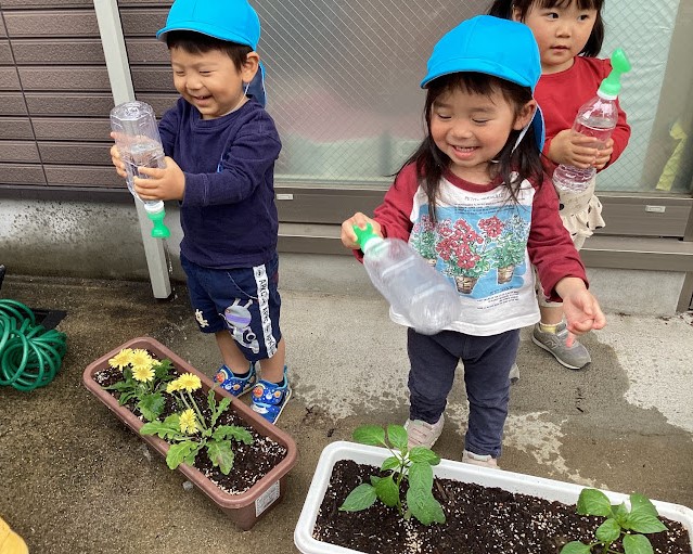 子どもたちのやってみたい気持ちがお花と一緒に育っています。