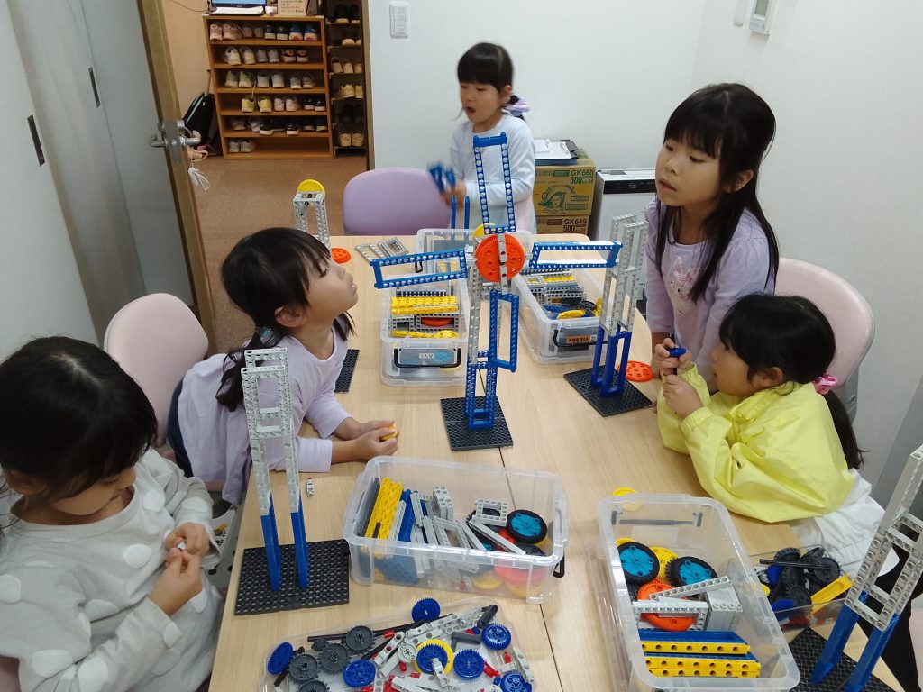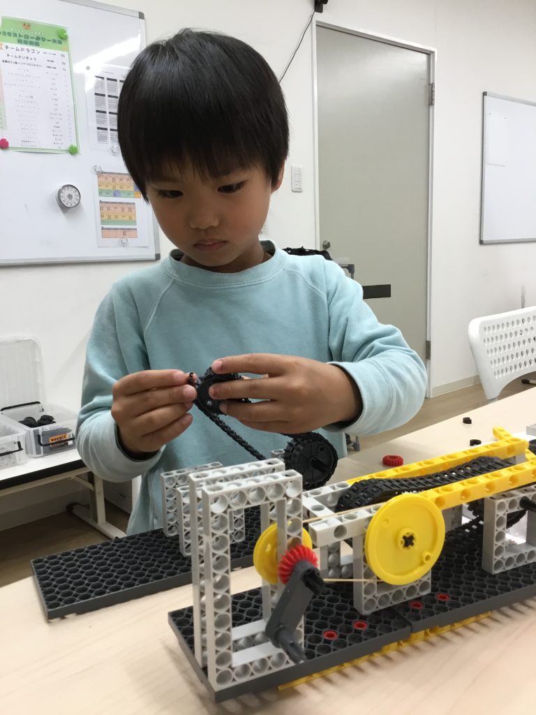 ブロックでの学びにモーターなどの電気で動くパーツも加わり、応用的なエンジニアリングについて学びます。